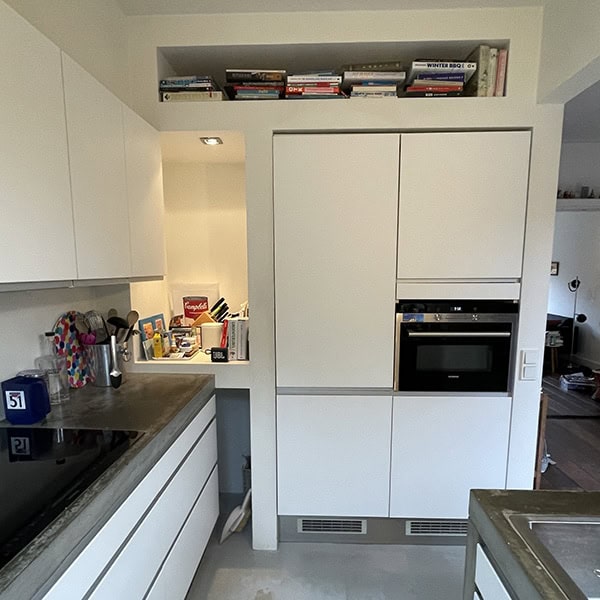 De functionele keuken is zorgvuldig uitgewerkt met een meubelmaker tot in het kleinste detail, zelfs met een fijne kruidenlade, daarover later meer;)